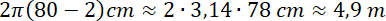 Oblicz szerokość spódnicy Ewy po podwinięciu – obwód koła o promieniu o 2 cm mniejszym niż promień zewnętrzny koła (80 cm):