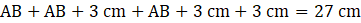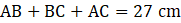 Suma wszystkich boków powinna być równa 27 cm. Znając zależności długości boków względem siebie, można szybko wyznaczyć długość jednego boku, a następnie policzyć długości pozostałych boków.