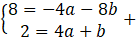 stwórz i rozwiąż układ równań. Na końcu oblicz punkty przecięcia z osiami OX i OY.