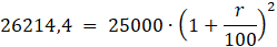 W tym zadaniu należy obliczyć roczną stopę procentową, jeśli pani Basia wpłaciła na konto 25000zł, a po dwóch latach miała na nim już 26214,40zł.