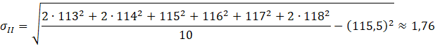 Najpierw zsumuj wartości danych i podziel przez ich ilość tak, aby obliczyć średnią arytmetyczną. Następnie oblicz odchylenie standardowe, czyli zsumuj kwadraty wszystkich wartości ze zbioru, podziel je przez ich ilość, odejmij kwadrat średniej arytmetycznej i całość spierwiastkuj.