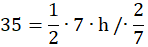 W tym zadaniu oblicz pola trójkątów ADC, DBC i ABC, bazując na podanym rysunku oraz wiedząc, że pole trójkąta ADE jest równe 35.
