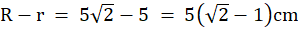 W tym zadaniu policz, o ile dłuższy jest promień okręgu opisanego na kwadracie o boku 10 cm od promienia okręgu wpisanego w ten kwadrat.