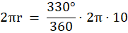 Zauważ, że obwód podstawy stożka jest taki sam jak długość łuku okręgu o promieniu 10 wyznaczonego przez kąt 330°.