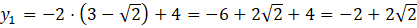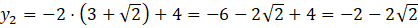 Aby obliczyć drugie współrzędne podstaw otrzymane wyniki do któregoś z dwóch równań za x. Zdecydowanie łatwiej będzie to zrobić podstawiając do równania prostej.