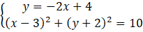 W tym zadaniu musisz wyznaczyć punkty wspólne prostej m, która przechodzi przez punkt (0,4) oraz okręgu o środku w punkcie P = (3, -2) oraz przechodzącego przez punkt (0, -3). Prosta m przechodzi także przez punkt P.