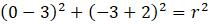 Skoro punkt (0, -3) należy do tego okręgu, to podstawiając do równanie tego okręgu x = 0 oraz y = -3 otrzymasz prawdziwe równanie.
