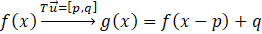 Z kolei przesunięcie wykresu o 3 jednostki w dół odpowiada translacji o wektor [0, -3]. Wzór na translację funkcji o dowolny wektor [p, q] ma postać: