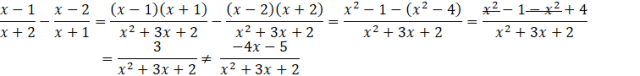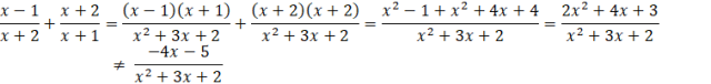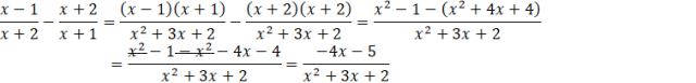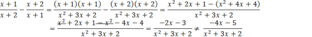 Aby określić które z podanych wyrażeń jest równe wyrażeniu wyjściowemu, musisz sprowadzić je do wspólnego mianownika i porównać w wyrażeniem wyjściowym. Mianowniki dwóch ułamków w każdej odpowiedzi to x + 2 oraz x + 1, więc wspólny mianownik będzie taki sam w każdym przypadku i będzie wynosił: