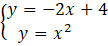 W tym zadaniu musisz określić jak odległe są od siebie punkty przecięcia prostej y = -2x + 4 z parabolą zadaną równaniem y = x2.