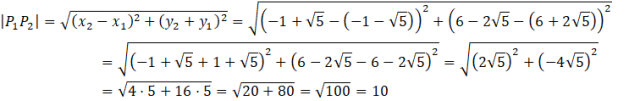 Aby obliczyć odległość między tymi punktami skorzystaj ze wzoru na odległość między dwoma punktami.