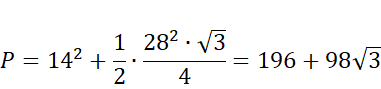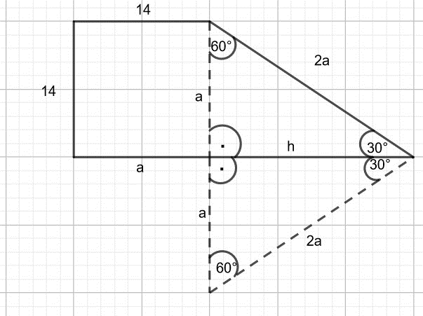 Podziel dany trapez na kwadrat i trójkąt prostokątny. Najpierw zauważ, że dany trójkąt jest połową trójkąta równobocznego. Korzystając z tego, że pole trójkąta równobocznego jest równe oraz ,gdzie to bok trójkąta równobocznego, a to jego wysokość oblicz wszystkie potrzebne wartości. Następnie dodaj do siebie pole kwadratu i pole połowy trójkąta równobocznego.