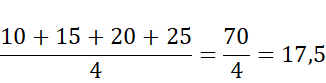 Średnia arytmetyczna czterech kolejnych dodatnich liczb dwucyfrowych podzielnych przez 5, począwszy od 10, jest równa 17,5