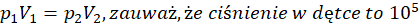 Skorzystaj z prawa Boyle’a i Mariotte’a: Pa, więc , gdzie x to ilość ruchów pompki. Różnica ciśnień: – wyciągnij 105 przed nawias i przekształć: . Podstaw odpowiednie wartości do wzoru i oblicz: