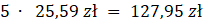Za komplet flamastrów w sklepie internetowym trzeba zapłacić 25,59 zł, a w sklepie osiedlowym kosztuje on 29,10 zł. Oblicz, ile zaoszczędzisz, jeśli kupisz 5 takich kompletów w sklepie internetowym, zamiast stacjonarnie, w sklepie osiedlowym.