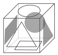 Zauważ, że odpowiedź A jest błędna ponieważ pusty kwadrat, koło i trójkąt nie mają wspólnego wierzchołka. Odpowiedź B jest błędna, ponieważ po złożeniu siatki ściany z pustym trójkątem i wypełnionym kołem będą naprzeciwko siebie. Odpowiedź D jest błędna, ponieważ puste koło i kwadrat, nie mają wspólnego wierzchołka z wypełnionym kwadratem.