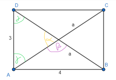 Znajdź wartości kątów powstałych w wyniku przecięcia przekątnych prostokąta, którego boki wynoszą 3 cm i 4 cm.