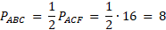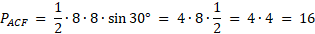 Stwórz trójkąt ACF, który będzie składał się z dwóch trójkątów ABC. Oblicz pole trójkąta ACF korzystając ze wzoru