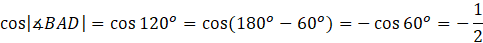 Wyznacz miarę cosinusa kąta BAD. Skorzystaj ze wzorów redukcyjnych. Zauważ, że w II ćwiartce układu współrzędnych cosinus jest ujemny.
