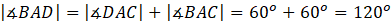 Oblicz miarę kąta BAD. Zauważ, że jest on sumą miar kątów DAC i BAC.