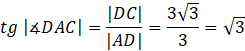 Skorzystaj z definicji funkcji trygonometrycznych w trójkącie prostokątnym i oblicz tangensy kątów DAC i BAC.