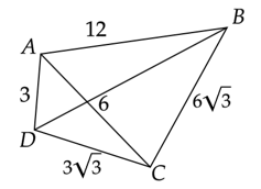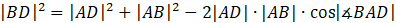 Skorzystaj z twierdzenia cosinusów w trójkącie ADB, aby wyznaczyć długość przekątnej BD.