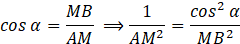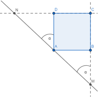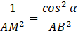 Widać, iż trójkąty ABM i ADN są przystające. Budujemy cosinus kąta alfa: