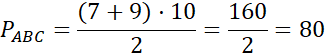 h=10→wysokość trójkąta ADE, ADC, DBC oraz ABC.