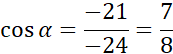-21 = -24 ∙ cos α / : (-24)