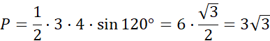 W tym zadaniu oblicz pole trójkąta, którego dwa boki mają długości 3 i 4, a kąt między tymi bokami ma 120˚.