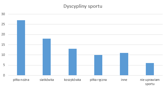 Ela i Ania przeprowadziły ankietę wśród uczniów klas ósmych w swojej szkole, pytając ich o dyscyplinę sportową, którą uprawiają. Zebrane dane zostały zapisane w tabeli. Opracuj te dane i przedstaw wyniki badania w wybrany przez siebie sposób.