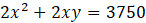 Przyjmij oznaczenia jak na rysunku. Działka o wymiarach x na y ma pole 1250. Działka o wymiarach