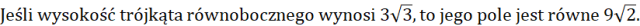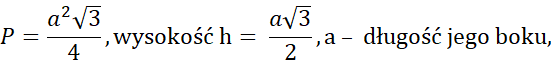 Pamiętaj, że wzór na pole trójkąta równobocznego, to: