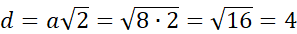 | Długość przekątnej kwadratu o polu równym 8 wynosi 4. | P | F |