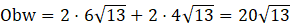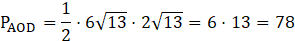 Okrąg o promieniu 13 został opisany na deltoidzie o polu równym 312. Zsumuj długości boków deltoidu i podaj pole powierzchni trójkąta AOD.