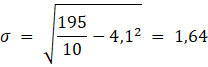 W zestawie dziesięciu danych, ich suma wynosi 41 a suma ich kwadratów 195. Wskaż wartość odchylenia standardowego: