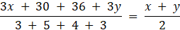Jeżeli średnią ważoną zestawu liczb: x z waga 3, 6 z waga 5, 9 z waga 4 oraz y z waga 3 jest równa średniej arytmetycznej liczb x i y, to te średnie są równe: A.