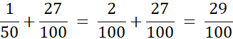 Rozszerz ułamki do mianownika 100 i wykonaj dodawanie, a potem odejmowanie.