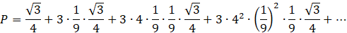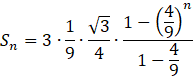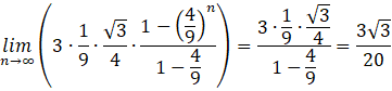 Skorzystaj ze wzoru na sumę wyrazów ciągu geometrycznego oraz wzoru na pole trójkąta równobocznego: