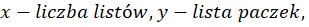 W tym zadaniu musisz określić liczbę paczek, które kurier miał do doręczenia, jeżeli listy stanowiły 40% wszystkich przesyłek. Wiadomo również, że gdy kurier dostarczył 4 listy, to paczki stanowiły 75% przesyłek, które pozostały.