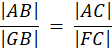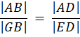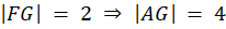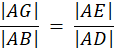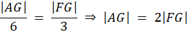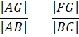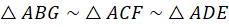 Zauważ, że na mocy cechy kkk trójkąty AGB, ACF oraz ADE są podobne. Z odpowiednich stosunków długości ich boków oraz twierdzenia Talesa wyznacz długości szukanych odcinków.