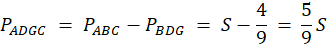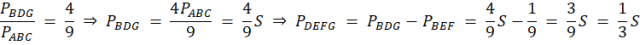 Zauważ, że jeśli proste EF i GD są równoległe do boku AC to zgodnie z twierdzeniem Talesa stosunki odpowiednich boków są sobie równe. Wyznacz skalę podobieństwa trójkąta BEF do trójkąta ABC i wyznacz dzięki niej jego pole. Analogicznie postąp z trójkątem BDG. Aby wyznaczyć pola trapezów DEFG i ADGC wyznacz różnicę między polami trójkątów.