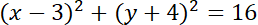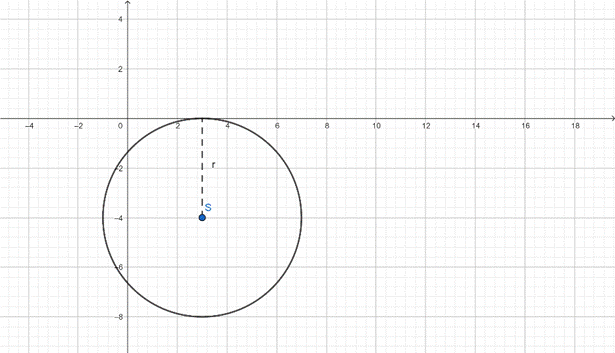 Wiesz, że promień jest równy 4. Nie ma wątpliwości, że punkt styczny z osią x jest tylko jeden. Z osią y są dwa punkty wspólne.
