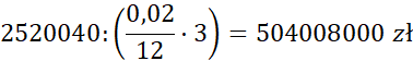W tym zadaniu w pierwszej kolejności oblicz, ile wynosi kwota pomniejszona o odsetki, a kolejno oblicz całą kwotę wpłaconą do banku po trzech miesiącach, a następnie dokonaj takich samych obliczeń dla kwoty po sześciu miesiącach.