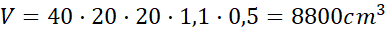 W tym zdaniu musisz obliczyć objętość graniastosłupa o wysokości 40 cm i podstawie w kształcie trójkąta prostokątnego – jedna przyprostokątna ma 20 cm, a druga jest o 10% dłuższa.