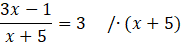 dla którego mianownik ułamka znajdującego się z lewej strony równania zeruję się. Możesz więc pomnożyć całe równanie przez wartość mianownika.