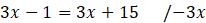 Zauważ, że (-1) nigdy nie jest równe 15, więc równanie nie ma rozwiązań.