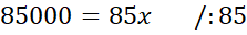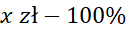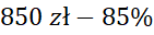 Ułóż proporcję, aby obliczyć początkową cenę roweru, czyli jego 100%. Z treści zadania wiesz, że 85% wynosi 850 zł. Pomnóż na skos i oblicz x z powstałego równania.