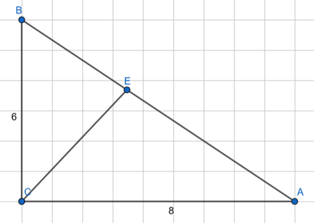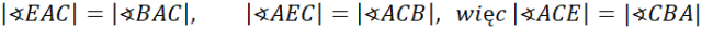 Następnie zauważ, że trójkąty ABC i CEB oraz ABC i CEB są podobne z cechy KKK, więc trójkąty CEB i AEC są również podobne z cechy KKK.