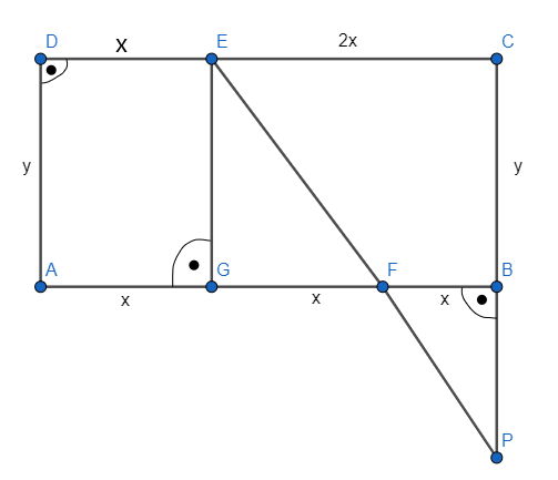 W prostokącie ABCD wybrano punkt E na boku CD tak, że |EC| = 2|DE|, oraz punkt F na boku AB tak, że |BF| = |DE|. Punkt przecięcia prostych EF i BC oznaczmy jako P. Udowodnij, że trójkąty AED i FPB są przystające.